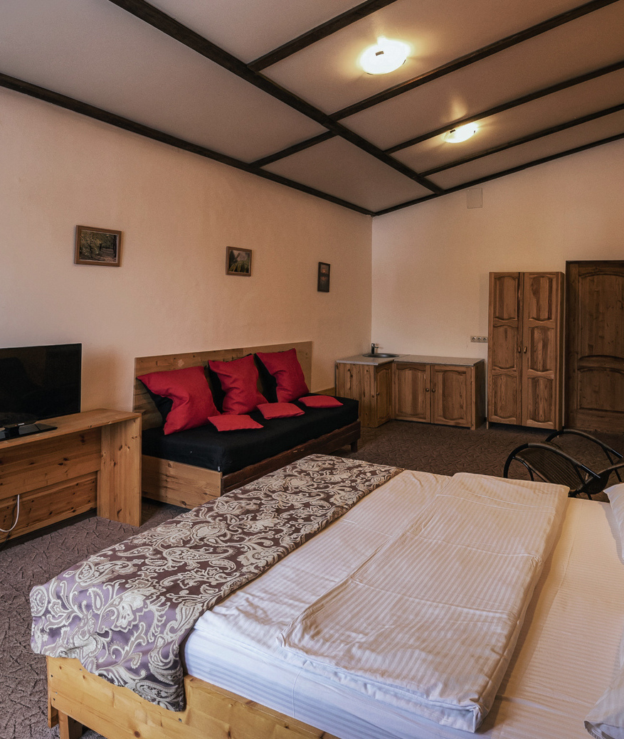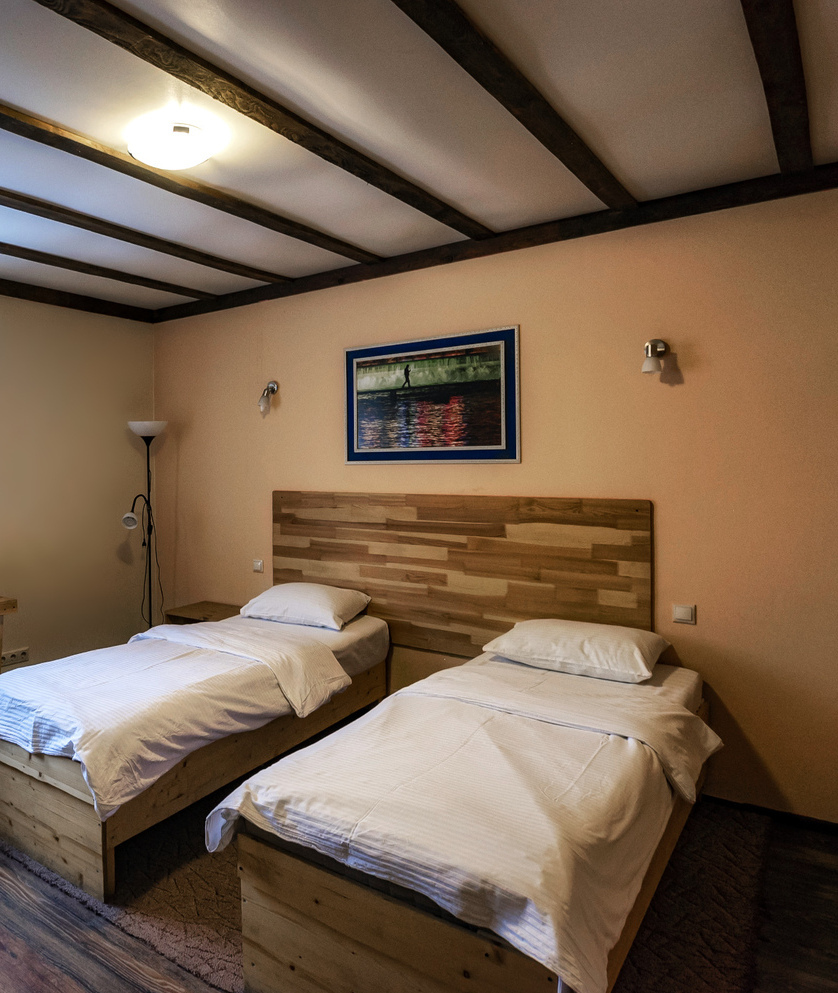 - В каждой комнате все удобства (туалет, душ), ТВ, Wi-Fi.